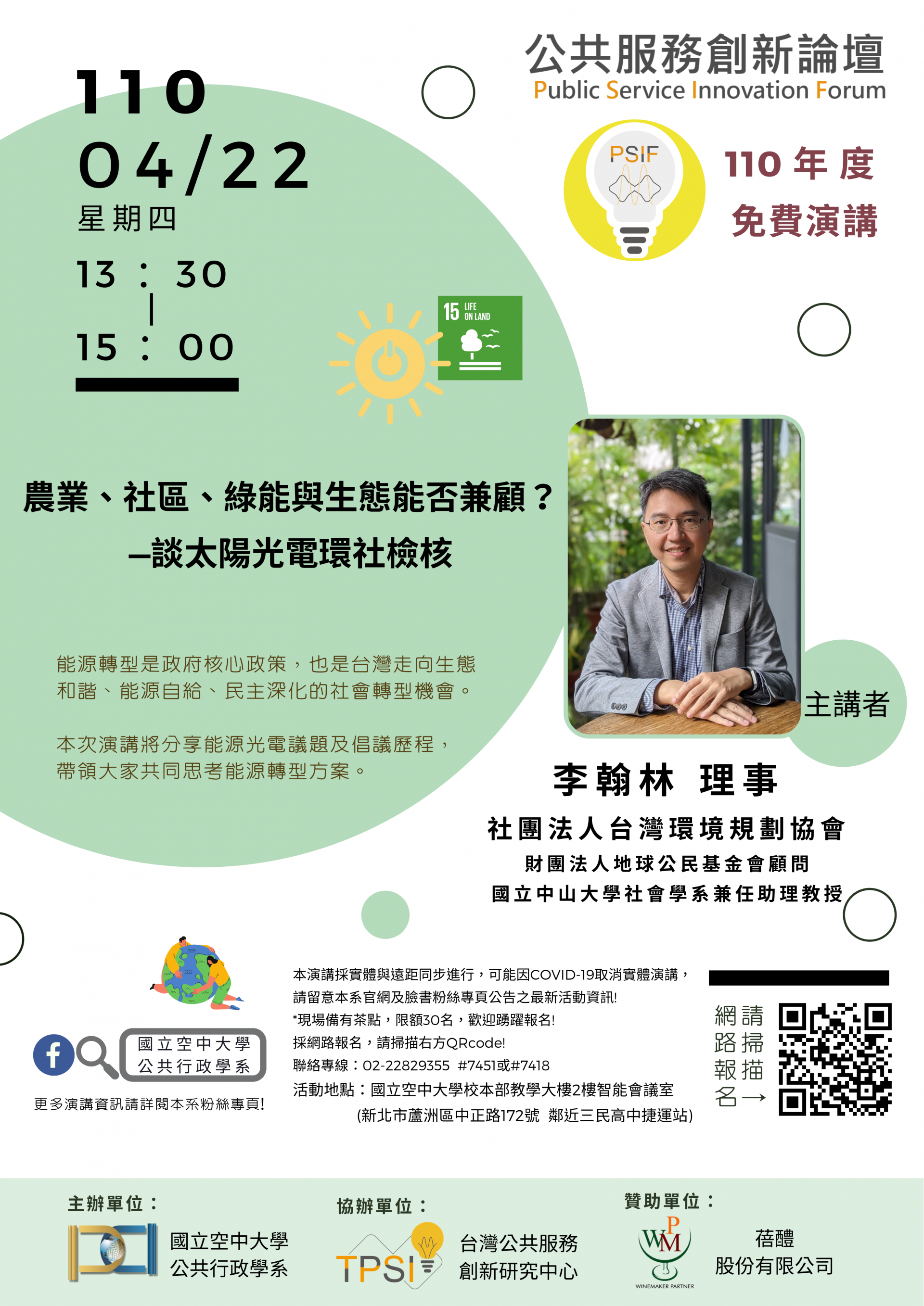 二、活動海報詳如附件,或請逕洽聯絡人:國立空中大學公共行政學系王鈺琁小姐,聯絡電話:02-22829355分機7451。