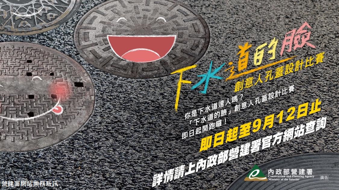 一、為推廣並建立民眾對於下水道建設的認識與了解,本署委託民視文化事業股份有限公司辦理「下水道的臉創意人孔設計比賽」,從110年8月16日至110年9月12日進行徵件,希望藉由下水道「人孔蓋—下水道的臉」作為主題,透過針對台灣民眾進行徵件比賽,以期在設計與創意中認識下水道建設並翻轉對下水道印象並能更認識下水道建設。