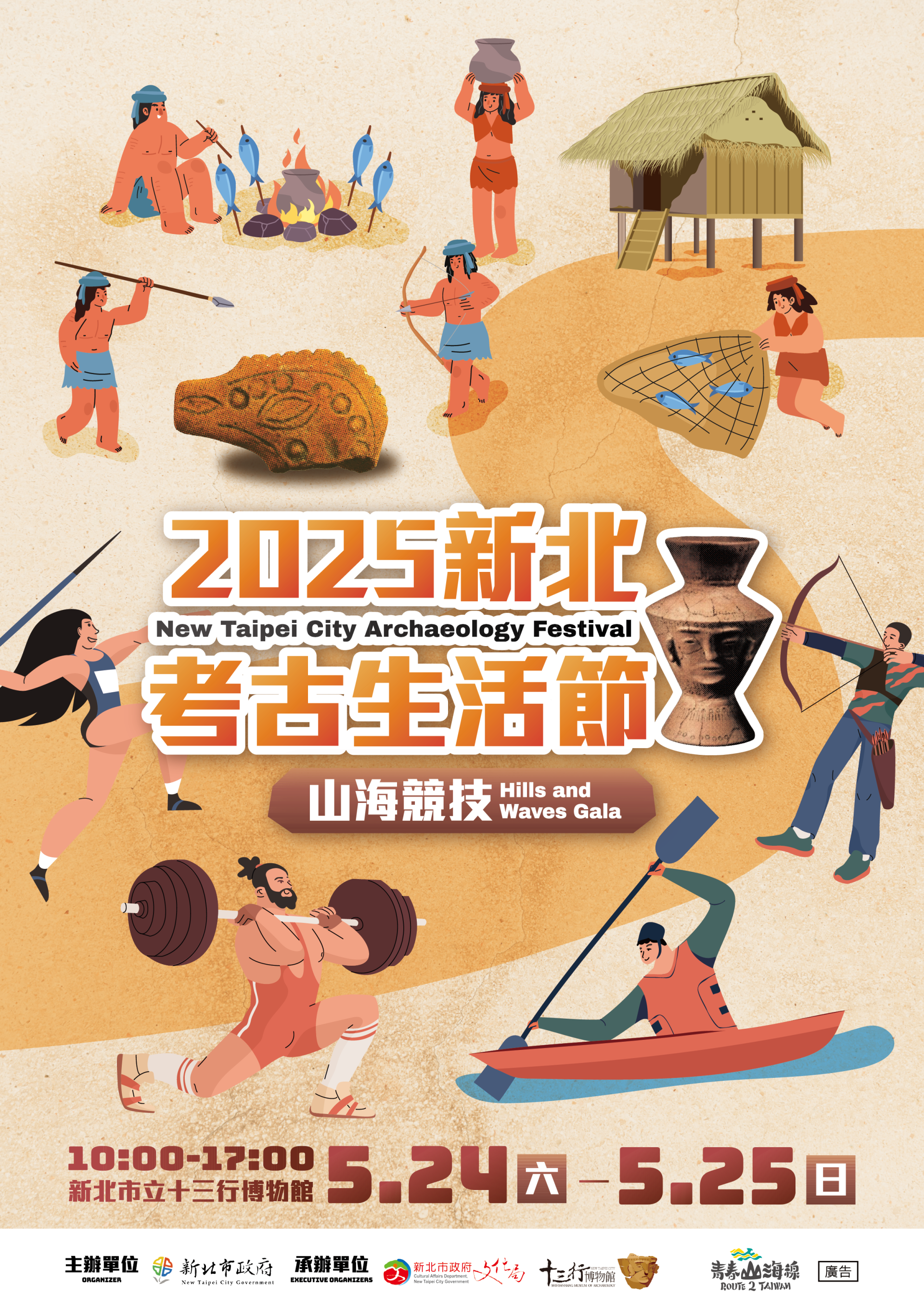 一、全臺唯一跨國考古盛會「2025新北考古生活節」於十三行博物館及新北考古公園隆重登場,114年以「山海競技」為主題,推出符合永續概念的好玩、好聽、好吃、好看考古體驗,活動資訊如下: